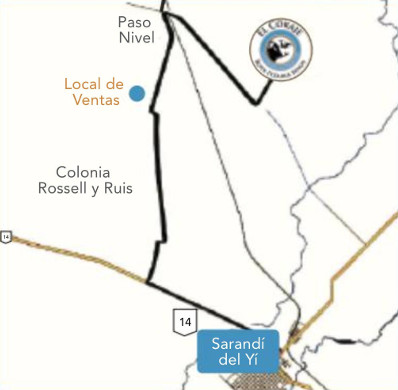 Luego se sale de éste tomando el primer camino a la derecha, cruzando por encima de un paso de nivel. Por este último se transitan 6kms y se toma una boca de calle a la izquierda. A los 2km al finalizar la calle se encuentra El Coraje.